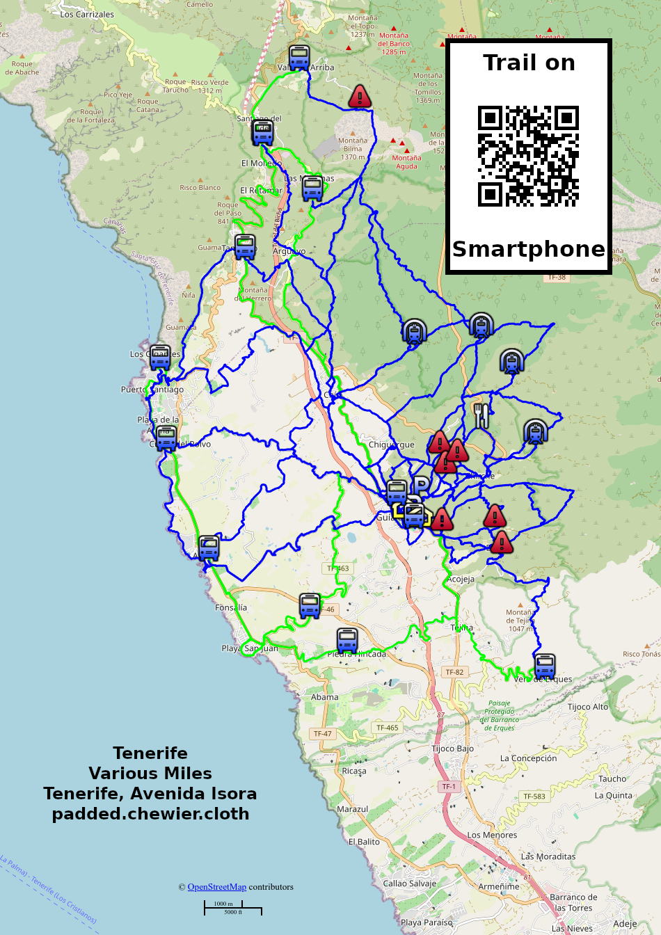 Downhill there are farms and banana plantations. Uphill the pine woods start. Using local buses, many more walking routes are opened up.