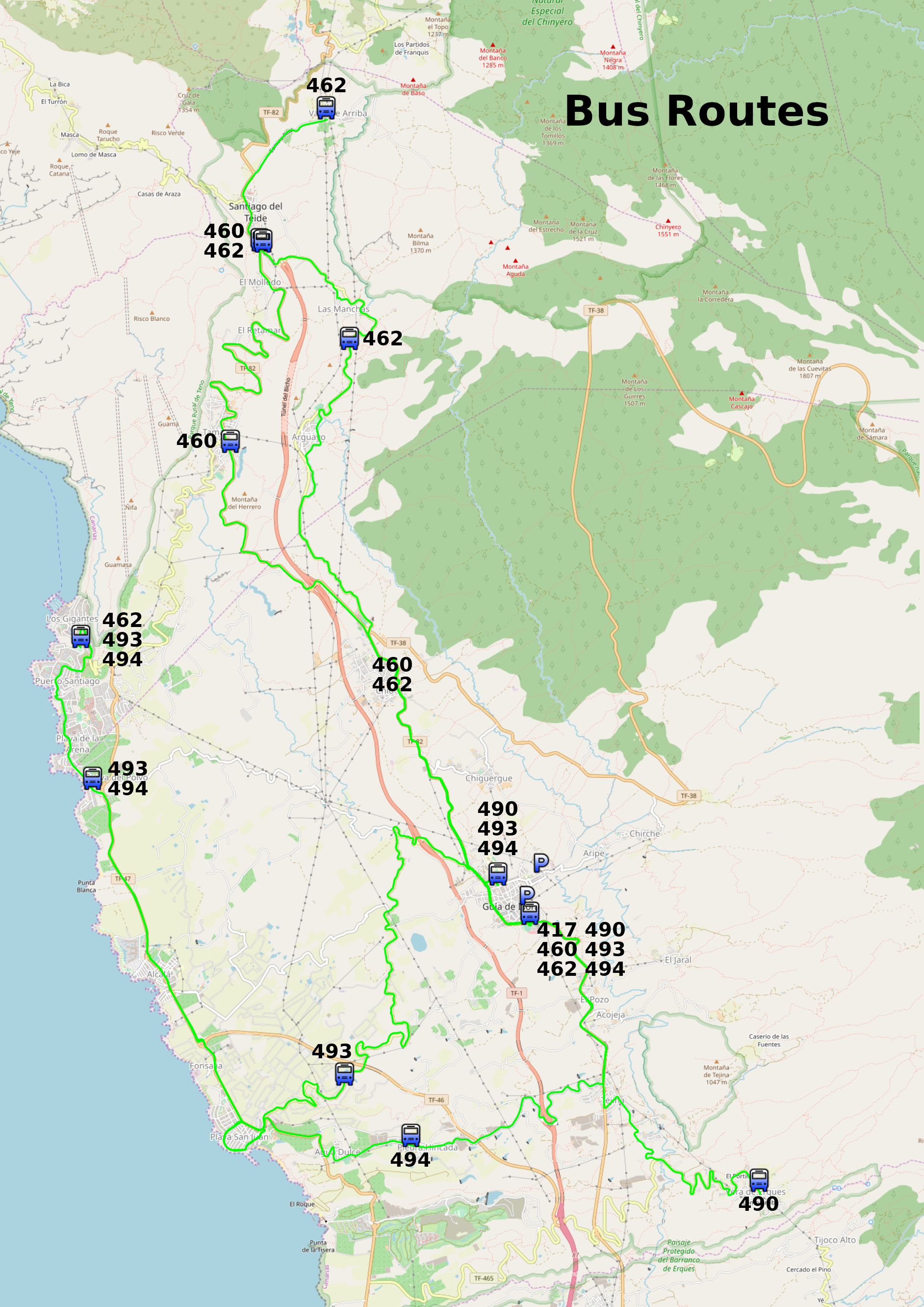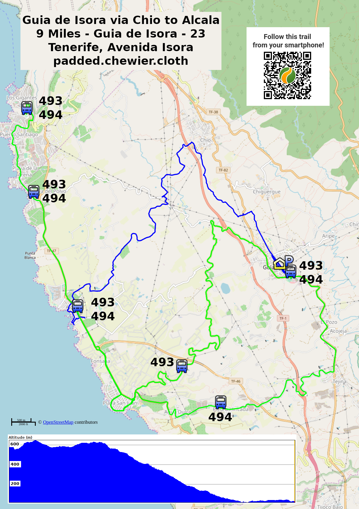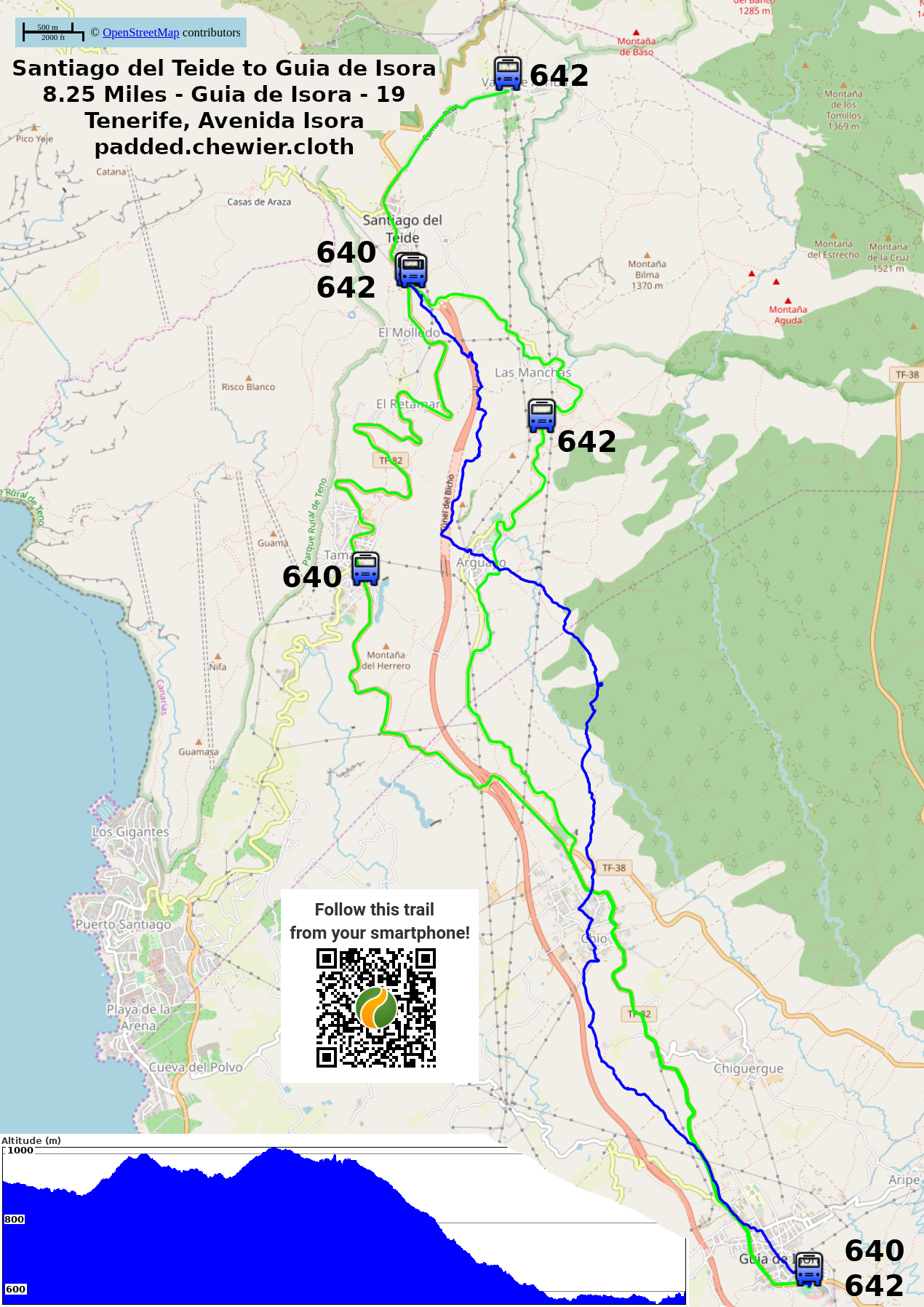 Guia de Isora is a small town 600 metres or 2000 feet above sea level. There are shops, bars, a bus station and an Olympic size swimming pool.